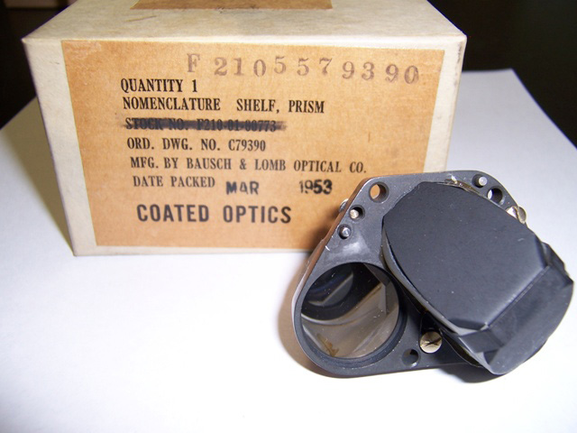 Unused in mint condition in the original military packaging. Complete prism cluster (right side) for your M8 (and many others) 6x30 binocular! Well made mounted two prism erecting assembly is what you need for building a spotting scope or monocular. Two mounted porro prisms, 2 inches long by 1 inch high. Assembly is 2-1/2 inches thick by 2-1/2 inches diameter and the view openings are 1 inch diameter. Coated optics, unused!