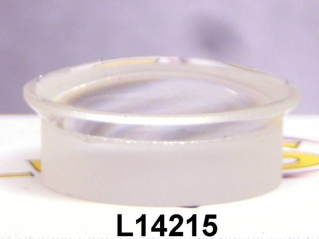 Here's one for you, cupcake! It's a fine quality thick PCX lens with a special "cupcake" shape. Front part is 24.5mm diameter and the "cake" section of the cylinder is 21.4 mm diameter. The center thickness is 10.4 mm and the edge thickness is approximately 8.6 mm. The front surface is anti-reflection coated