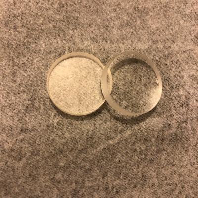 Crown and flint when put together produces an achromatic lens 20mm diameter with a focal length of 255mm. Unused.