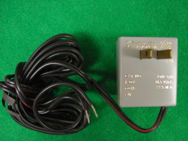 Input is 120vac, 60Hz, 8 watts and output is 14.5vdc at 22.5ma. Leads are 9 feet long 16 gauge wire. Unused