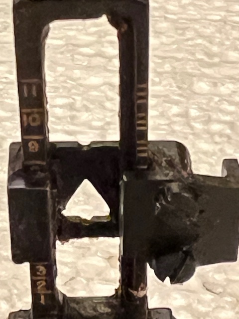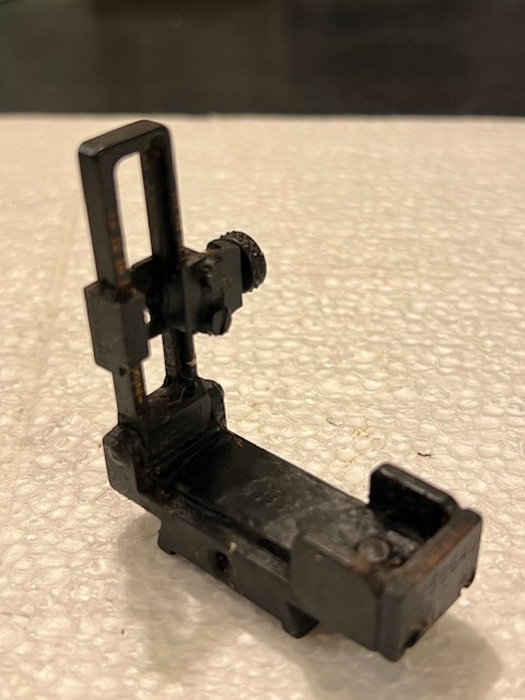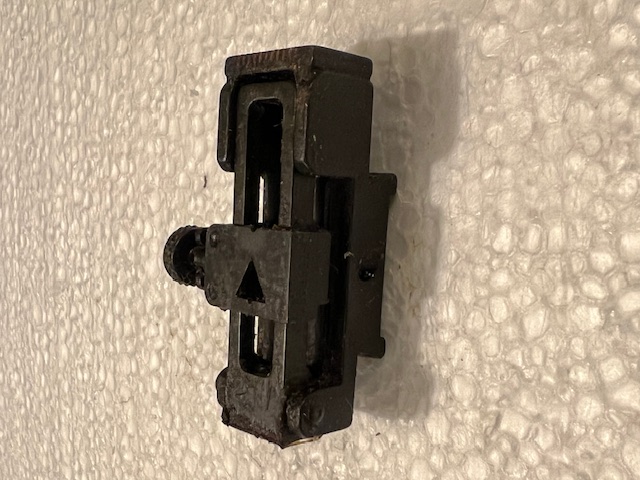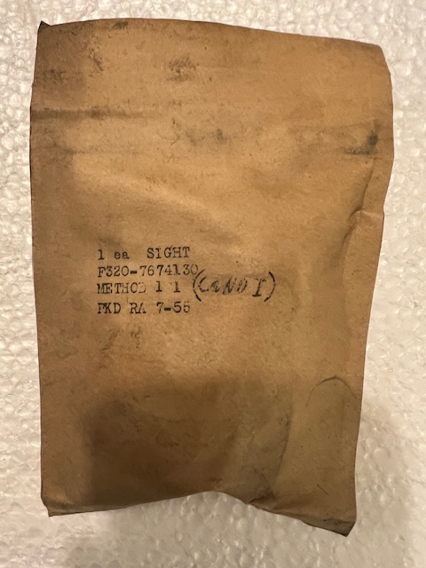 Unused in the original military packing this sight was made for the military 57mm recoilless anti-tank rifle. Government part number: F320-7674130. Package dated 7-55. Measures 2-1/8 inches long by 3/4 inches wide. Arm is 2-1/8 inches high. See attached photos. Only have a few.